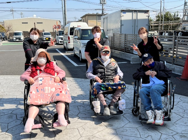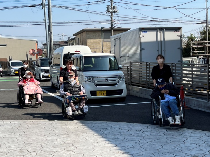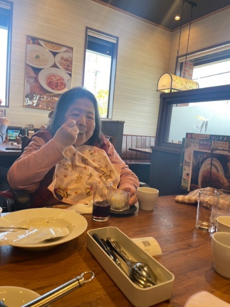 今日は最近、近くにできた「オリーブの丘」へ利用者様が外食です。