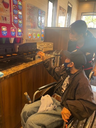 利用者さまの食べたいもの・飲みたいものをできるだけ実現させるため、さまざまな工夫を取り入れています。気管切開を行い人工呼吸器を使っている利用者さまでも、食事やスイーツなどを食べやすい形状にしてお口で味わうことや、胃ろうを通してアルコールを摂取することが可能です。「胃ろうからお酒?」と驚かれるかもしれませんが、MCではできる限り利用者さまのご希望に沿えるよう、体調と相談しながら柔軟な対応を行っています。