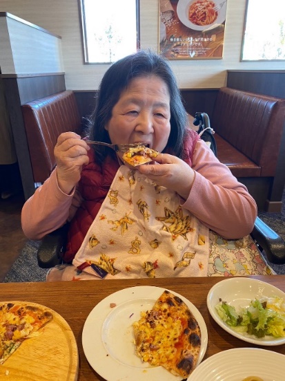「チーズのとろ~としたピザが食べたい♡」と言われていた利用者様はピザをご注文。
