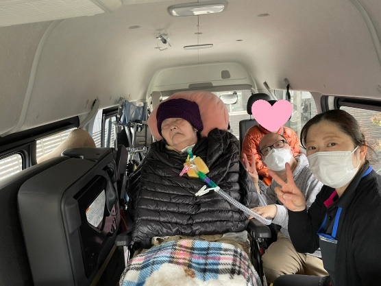 皆さん久しぶりの車での外出で楽しそう。