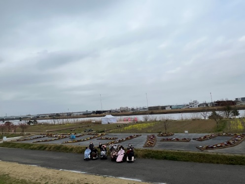 大きな花文字の前で・・