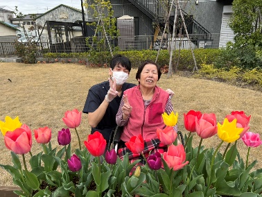 ケアマネさんが植えてくれたチューリップも満開です♡