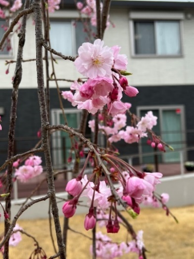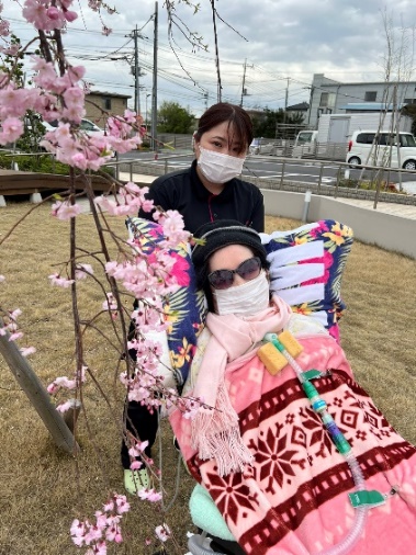 少しずつ枝も伸び、利用者様も目の前でお花が見られるようになりました。