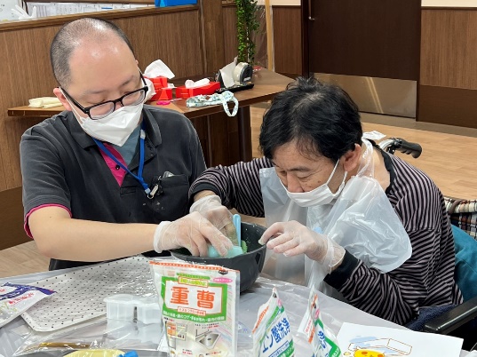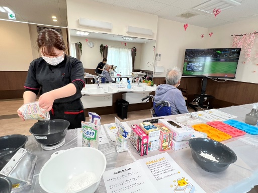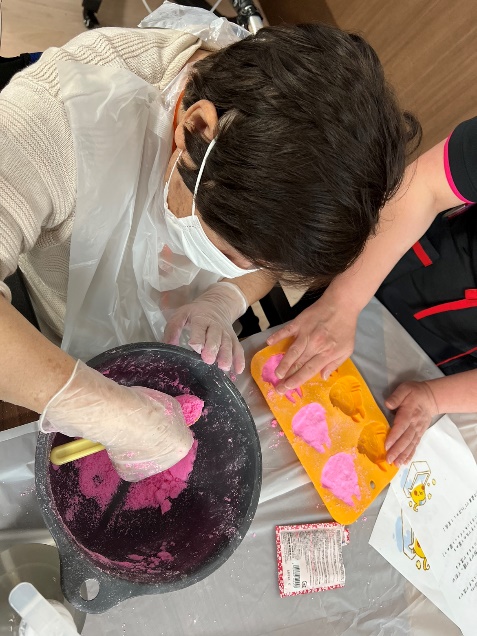 今日は利用者様も楽しみにされていたバスボム作りです。
