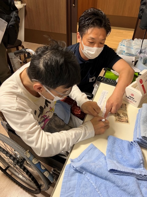 こちらの利用者様はタオルたたみのお仕事。