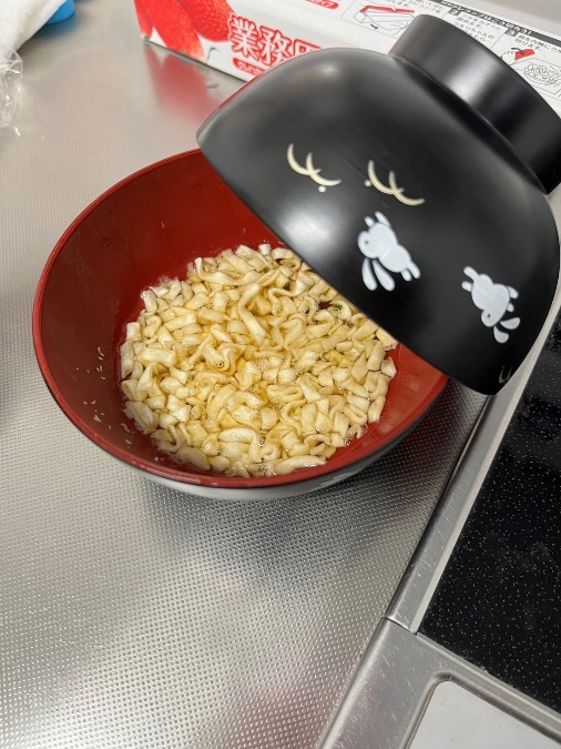 面は細かくさせていただき、お揚げは4分の1の大きさに。