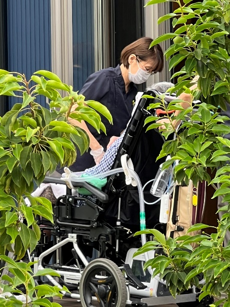今はゆったりとした表情で車椅子に乗られています。
