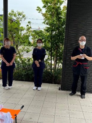 ・大きな揺れにより建物倒壊の危険あり、利用者様(職員)を建物の外へ避難。