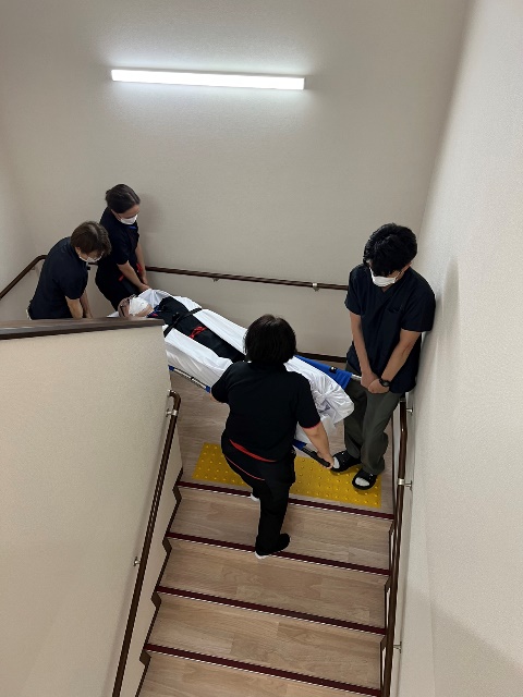 ノイエは階段入り口が狭く直角なため、担架の取り回しができず・・・