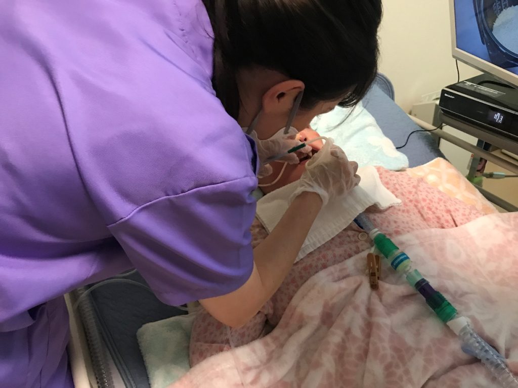 飲食をする方、しない方に関わらず、数種類の歯ブラシ、吸引チューブを使い分け口腔内をきれいにしてくれています。