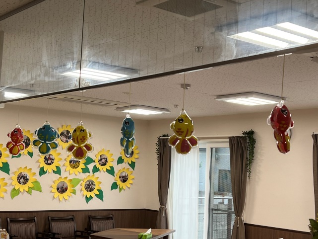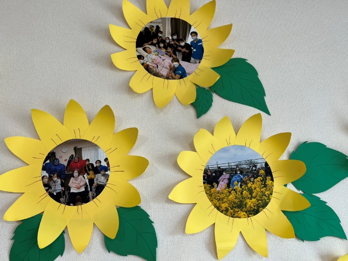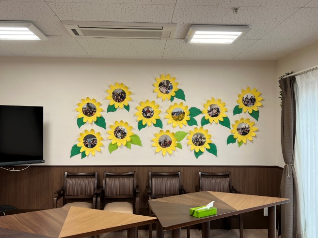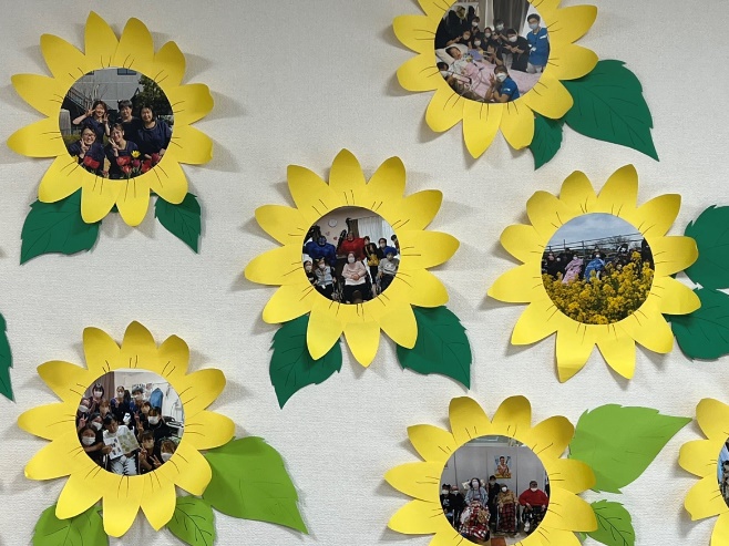 ひまわりの中心はノイエの利用者様や職員さんの笑顔の写真が!