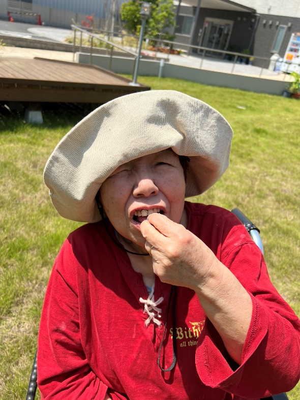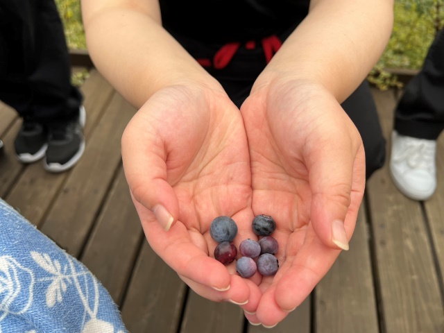 利用者様も黒くて大粒のブルーベリーをパクリ