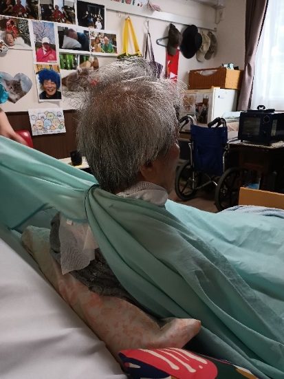今回はベッド上でのカットやカラーの利用者様が多くいらっしゃいました。