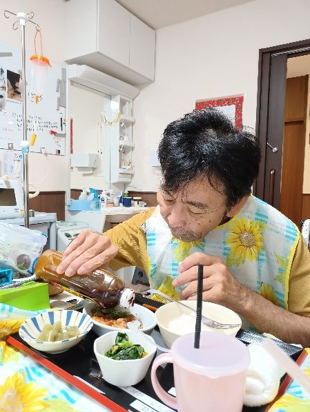 利用者さまの食べたいもの・飲みたいものをできるだけ実現させるため、さまざまな工夫を取り入れています。気管切開を行い人工呼吸器を使っている利用者さまでも、食事やスイーツなどを食べやすい形状にしてお口で味わうことや、胃ろうを通してアルコールを摂取することが可能です。「胃ろうからお酒?」と驚かれるかもしれませんが、MCではできる限り利用者さまのご希望に沿えるよう、体調と相談しながら柔軟な対応を行っています。