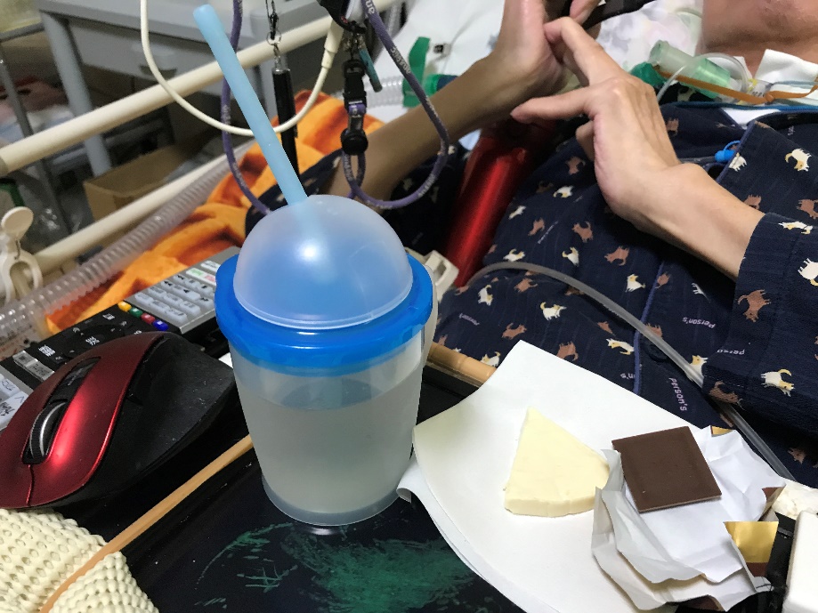 人工呼吸器を装着している方が食べたり、飲んだりしている、、