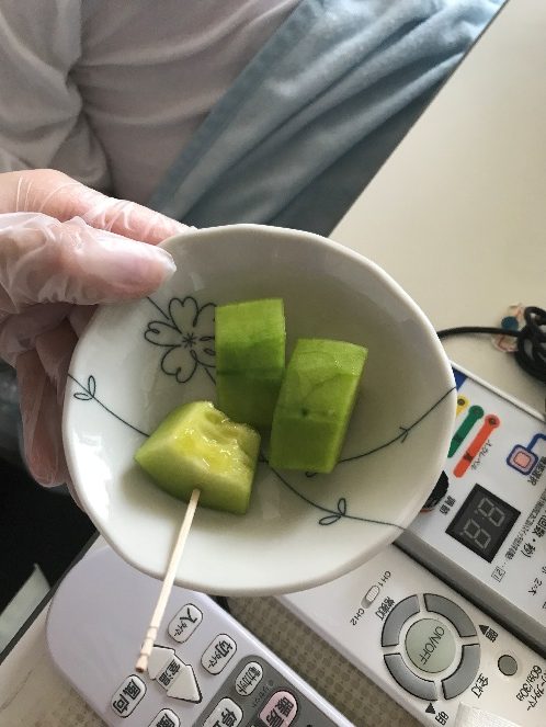 利用者さまの食べたいもの・飲みたいものをできるだけ実現させるため、さまざまな工夫を取り入れています。気管切開を行い人工呼吸器を使っている利用者さまでも、食事やスイーツなどを食べやすい形状にしてお口で味わうことや、胃ろうを通してアルコールを摂取することが可能です。「胃ろうからお酒?」と驚かれるかもしれませんが、MCではできる限り利用者さまのご希望に沿えるよう、体調と相談しながら柔軟な対応を行っています。