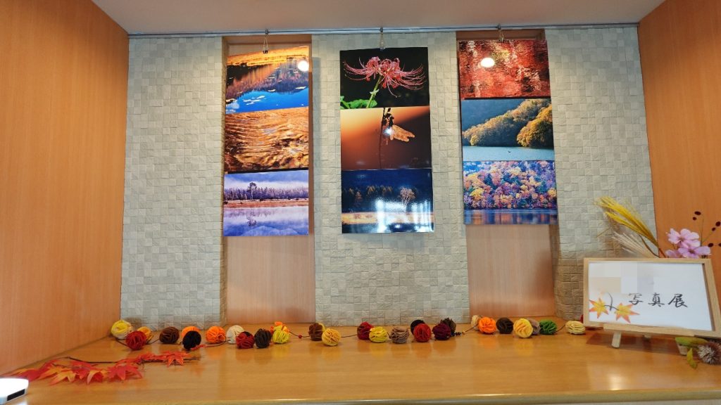 前々からリハビリ職員からの提案で、素敵な作品をエントランスに飾りませんか?と提案することはありましたが、乗り気ではありませんでした。しかし、他の人が写真を展示しているのを見て、自分もやってみたいと思ったそうです。
