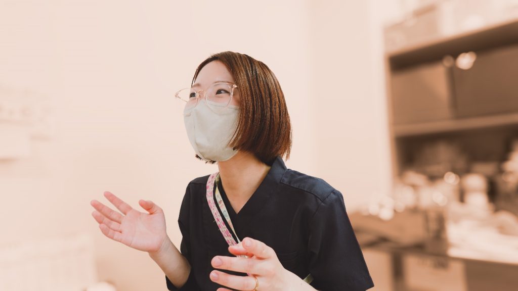 作業療法士として、利用者様と一緒にエントランス写真展を完成させる過程は自分自身の成長にも繋がりました。週に1回ベッドから起きる時間を利用して、どの作品を選び、どう展示するか一緒に考えました。利用者様が自分で写真や展示場所を選ぶ姿は、自信が高まっていると感じました。