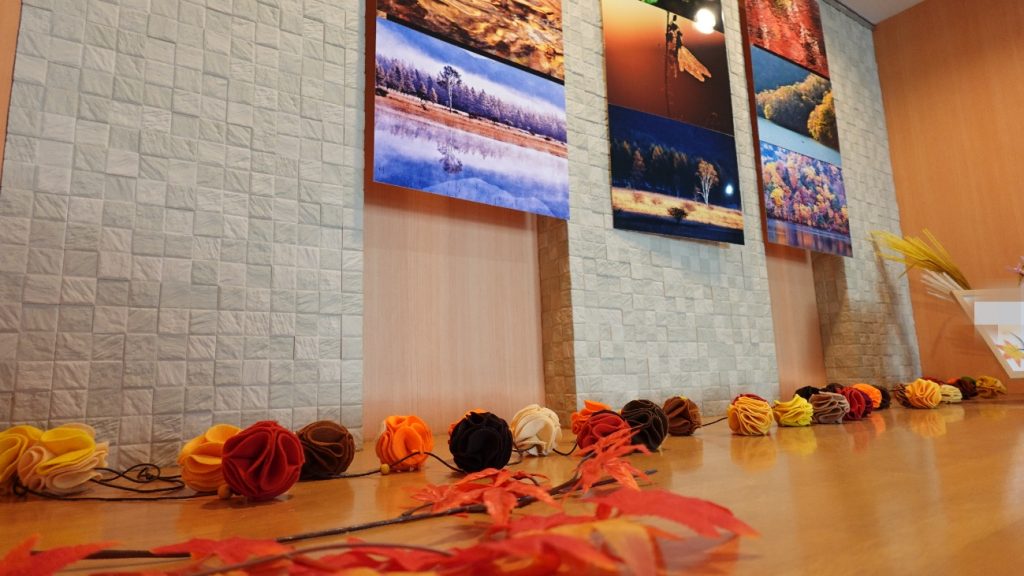 エントランスでは様々な作品を掲示しています。その一環では今回のように利用者様の協力し、作品を作り上げることもあります。ぜひ、サポートハウスみさとヴィラに起こしいただいた際には、ご覧いただけると幸いです。