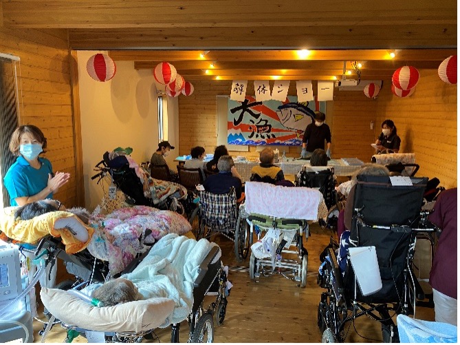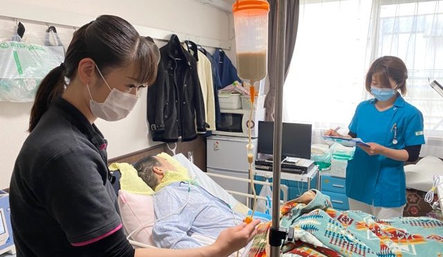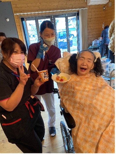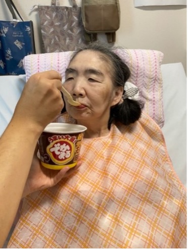 利用者さまの食べたいもの・飲みたいものをできるだけ実現させるため、さまざまな工夫を取り入れています。気管切開を行い人工呼吸器を使っている利用者さまでも、食事やスイーツなどを食べやすい形状にしてお口で味わうことや、胃ろうを通してアルコールを摂取することが可能です。「胃ろうからお酒?」と驚かれるかもしれませんが、MCではできる限り利用者さまのご希望に沿えるよう、体調と相談しながら柔軟な対応を行っています。