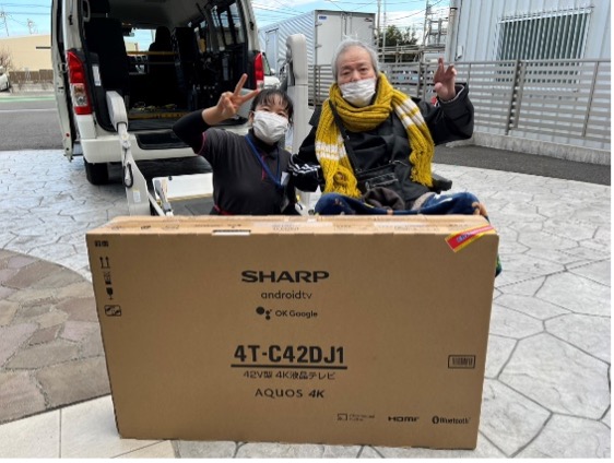 MCでは、個室を利用者さまのご自宅のように、自由にレイアウトしていただいています。ベッド・洗面台・エアコン等は標準設置されていますが、家具、日用品、専用テレビ等を自由に持ち込むことが可能です。大きなテレビでドラマや映画を楽しんだり、ミシンで手芸をしたり、壁一面に思い出の写真を飾ったり…。一人ひとりの暮らし方を変えることなく、自由に日常を過ごしていただけます。