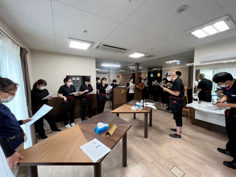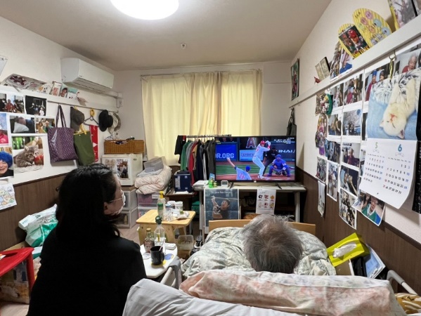MCでは、個室を利用者さまのご自宅のように、自由にレイアウトしていただいています。ベッド・洗面台・エアコン等は標準設置されていますが、家具、日用品、専用テレビ等を自由に持ち込むことが可能です。大きなテレビでドラマや映画を楽しんだり、ミシンで手芸をしたり、壁一面に思い出の写真を飾ったり…。一人ひとりの暮らし方を変えることなく、自由に日常を過ごしていただけます。